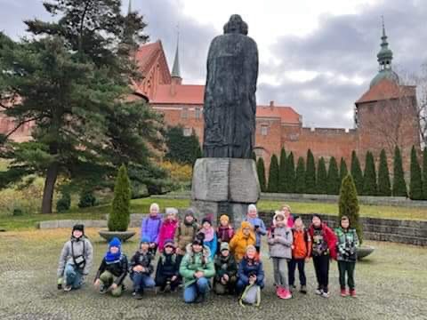 W dniu 10.11.2022 r. uczniowie i nauczyciele klasy 3a, wzięli udział w wycieczce do Fromborka, korzystając z programu ,,Poznaj Polskę". Rok 2023 jest Rokiem Kopernikańskim, w związku z czym postanowiliśmy wybrać się do miasta, gdzie Patron naszej szkoły spędził ponad 30 lat swojego życia. Przemierzyliśmy Wzgórze Katedralne, podziwiając piękne, jesienne widoki pod opieką pani przewodnik, która ciekawie opowiadała o życiu Mikołaja Kopernika i zabytkach miasta. Podziwialiśmy zabytkową Bazylikę Archikatedralną, w której na dłuższą chwilę zatrzymaliśmy się przy grobie Mikołaja Kopernika. Zwiedziliśmy również Muzeum Kopernika, a następnie obejrzeliśmy seans w planetarium, który przybliżył nam tematykę astronomii i teorii heliocentrycznej. Ostatnim punktem wycieczki była Wieża Radziejowskiego, z której podziwialiśmy panoramę Fromborka. Do domu wróciliśmy z optymistycznym nastrojem, bogatsi o wiedzę o naszym Patronie- człowieku wyjątkowym i sławnym na całym świecie.